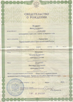 1. Копия свидетельства о рождении