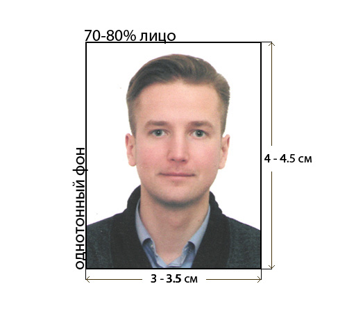 Фон фотографии должен быть однотонным. Лицу должно быть отведено 70-80% места на фотографии.